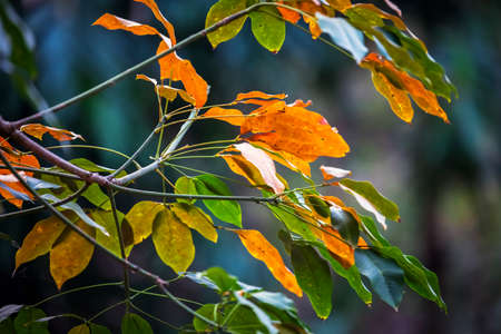 Leaves change colors in tropical forest, vintage color