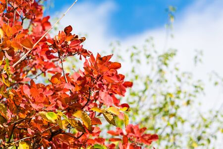 Vivid red leaves bush autumnal