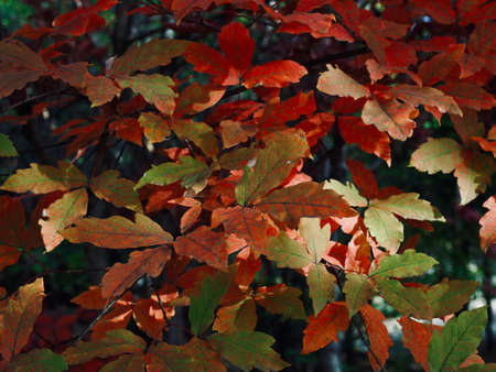 Detail of the red leaves of the Montpellier maple (Acer monspessulanum) in the autumn.
