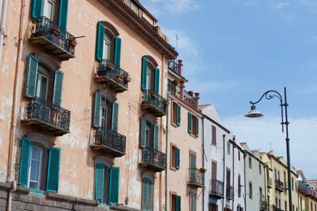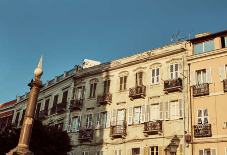 Typical old facade in the city of Cagliari in the main shopping square - Sardinia