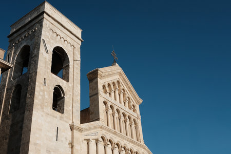 Cagliari, Sardinia island, Italy - December 12, 2019: Neo Gothic facade of Cagliari Cathedral of Saint Mary in Sardinia Iisland, Italy