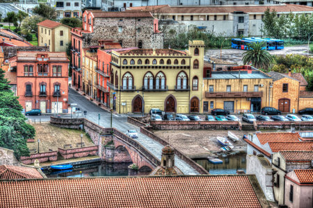 Bosa cityscape on a cloudy day. Processed for hdr tone mapping effect.