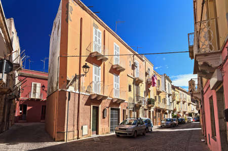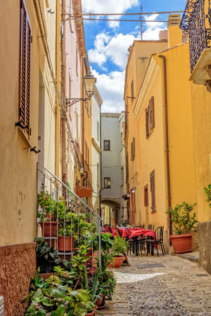 Colorful houses in the alleys of the town of Bosa in Sardinia in sunlight in spring