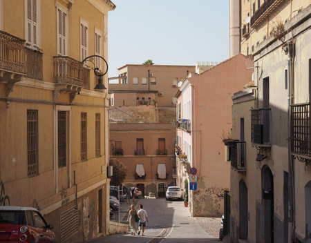 26 APRIL 2017 CAGLIARI, ITALY. View of Street in Old Town of Cagliari.