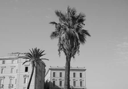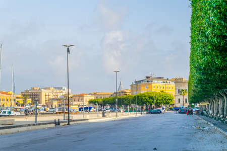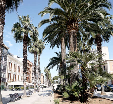colorful city houses of Bari, Apulia, Italy. Boulevard, palm trees of Corso Vittorio Emanuele.