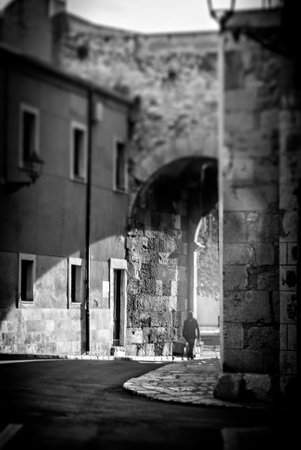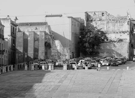CAGLIARI, ITALY - CIRCA SEPTEMBER 2017: Castello quarter aka Casteddu e susu (meaning Upper Castle in Sard) old medieval town city centre in black and white