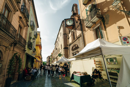 street in downtown in Cagliari, Sardinia, Italy - may 2 2024. High quality photo