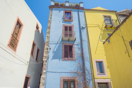 Magnificent view from the top of a district of Cagliari with its typical and colorful buildings