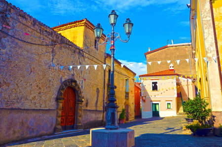 Small square in Bosa, Italy. Processed for hdr tone mapping effect