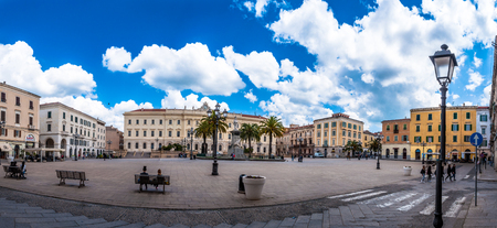 Panoramic view of Italy Square in the city of Sassari in a cloudy day of spring