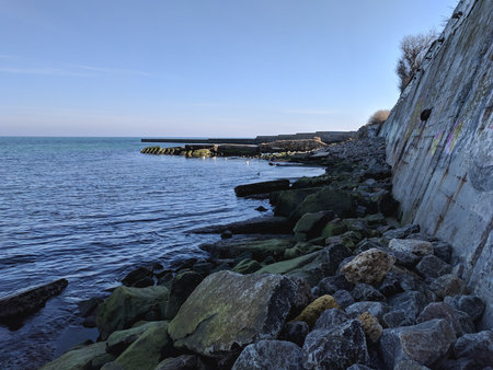Odessa, Ukraine - 12.27.2018. Panoramic winter view of the coastal line in Odessa, Ukraine