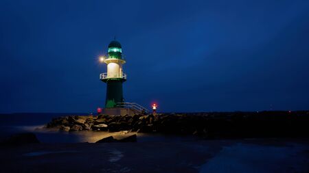 night view of lighthouse of Warnemuende on the Baltic Sea at the