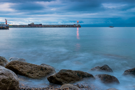 Lighthouse in the port of the city of Sochi, Krasnodar Territory. Russia