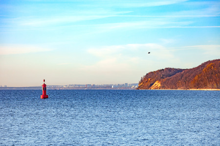 Baltic Sea from Cliff in Mechelinki, Poland. Nature and travel concept. copy space on blue sky.