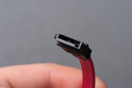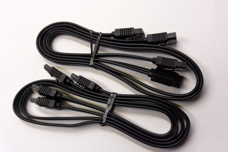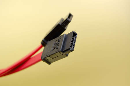 Gothenburg, Sweden - April 24 2022: Red and blach SATA hard drive data cable