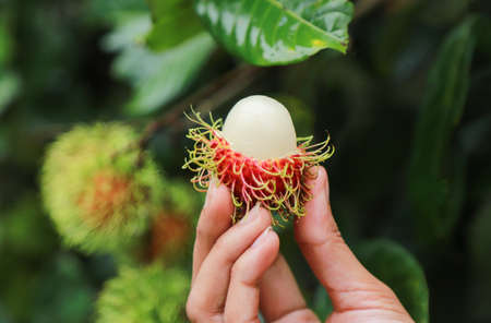 Organic rambutan from fresh juicy food of local fruit farm in tropical season