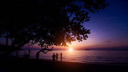 Sunset atmosphere at Phayun Beach Which is a tourist attraction in Rayong Province, Thailand Had Phayun in the evening, people often come out to relax.