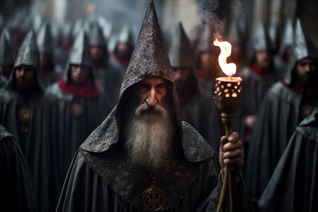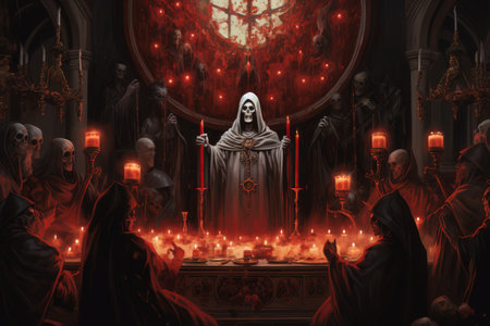 Midnight mass devil. Festival blood saint flame ritual. Generate Ai