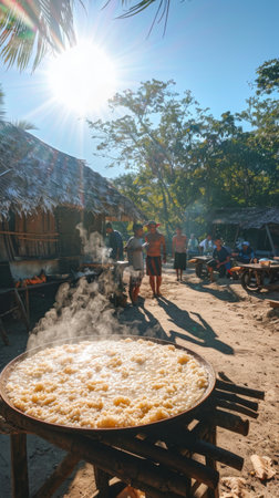 A group of locals eagerly waits for the chefs to sample their traditional dishes hoping to impress and share their love for their islands cuisine