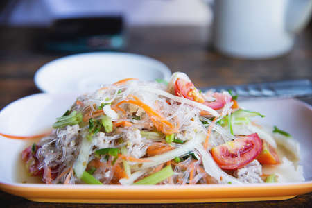 Traditional Thai food called Glass Noodle Pork Nut Spicy Salad