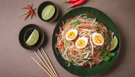 Som Tum - Thai Spicy green papaya salad with salty eggs - Asian food style