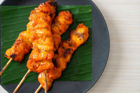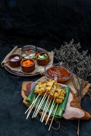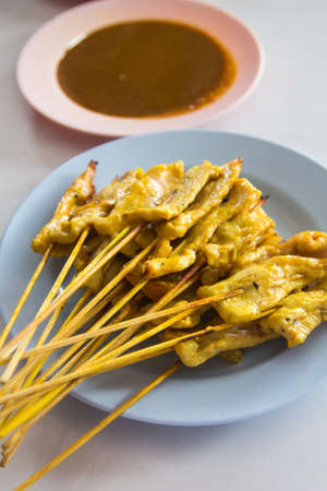 Thai dish from floating market Pork Satay Moo-Sa-Tay