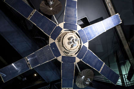 LE BOURGET, PARIS, FRANCE - OCTOBER 8, 2016 : : Interior of the Museum of comonautic and aviation Le Bourget , historical rockets and satellites, from explorations , Paris