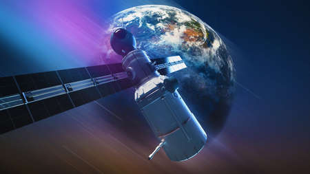 Satellite in space. 3D rendering. Elements of this image furnished by NASA