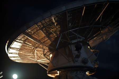 close-up of satellite dish, receiving signals from distant spacecraft, created with generative ai