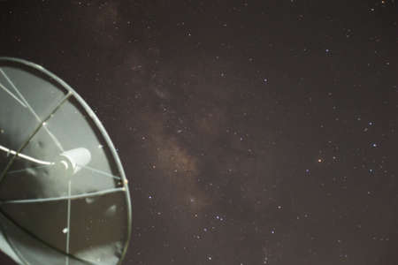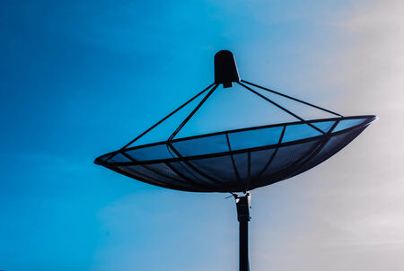 Satellite dish sky sun stars communication technology network image background for design sunset