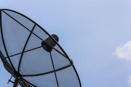 Outdoor sattelite dish isolated on sky background.