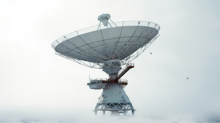 A black and white photograph featuring a satellite dish against a contrasting background, A simplistic satellite dish against a stark background, AI Generated