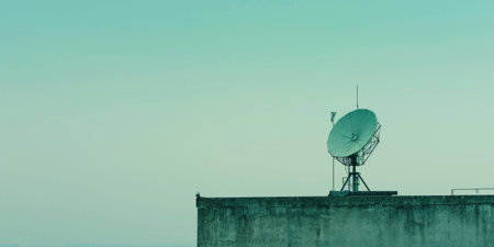 Communications Satellite Dish on Urban Building Against Clear Sky