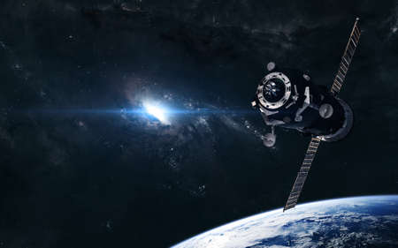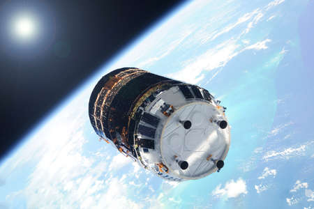 Space satellite in space above the earth. Elements of this image were furnished by NASA for any purpose