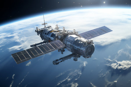 futuristic Space satellite orbiting the earth.