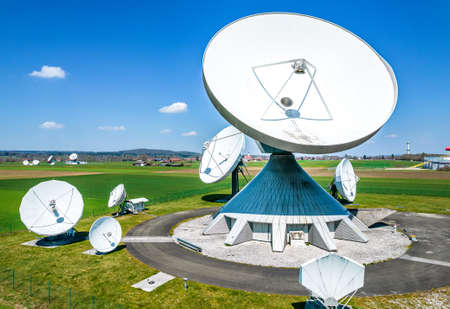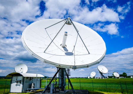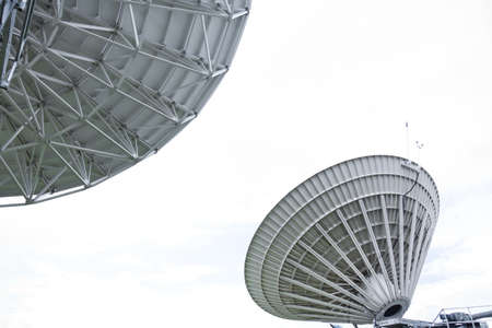 close-up of satellite dishes, each one pointing in different direction, created with generative ai