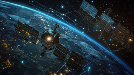 Sattelite in space above earh is orbiting the planet future technology. Generative AI
