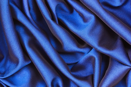 Beautiful draped silk fabric in blue. Background from the waves of satin fabric