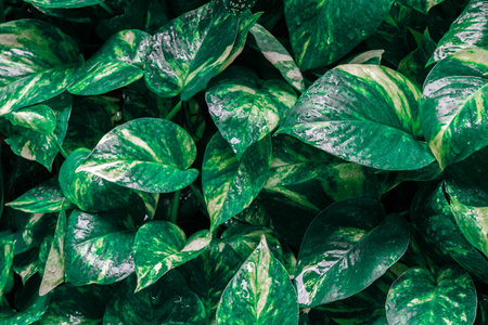 Natural background of Epipremnum aureum leaves, beautiful green-white heart-shaped leaves in the garden for background.