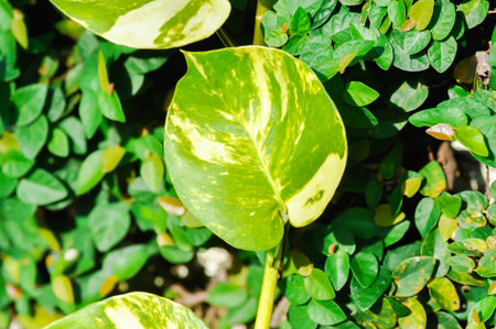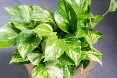 Epipremnum aureum popular ornamental houseplant leaf closeup