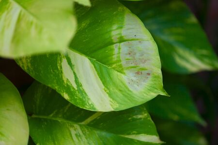 Close up leaf of epipremnum pinnatum variegated green plants concept.