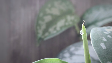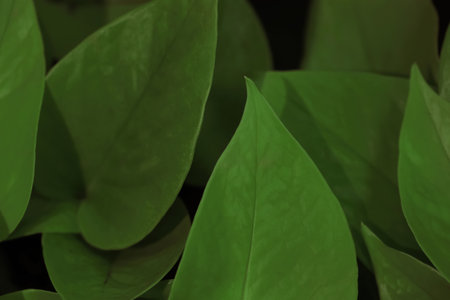 Close up of Aglaonema leaves, also known as Epipremnum aureum , Scindapsus pictus