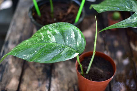 Scindapsus pictus, the satin pothos or silver vine grown in greenhouse