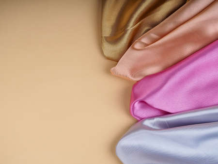 Background with smooth beige and brown satin fabric. Top view.