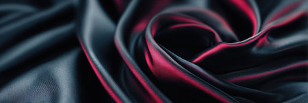 Silk fabric drapes elegantly with deep shades of red and black, showing smooth textures and vibrant colors perfect for clothing or interior design.