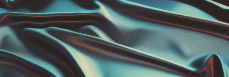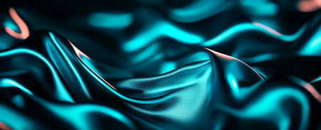 A Sleek teal fabric waves create mesmerizing abstract background, showcasing smooth textures and vibrant colors. interplay of light enhances visual depth and elegance