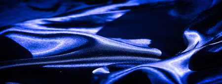 Blue abstract background. Shiny Natural Dark Blue Silk, Smooth Silk Texture Of Fashion Clothes, Underwear, Close-up. Silk Fabric Material, Textile, Linen. Abstract Blue Silky Background. Clothing Factory. Textile industry. abstract