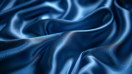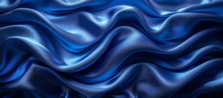 Elegant deep blue satin with luxurious silky texture, draped gracefully soft folds