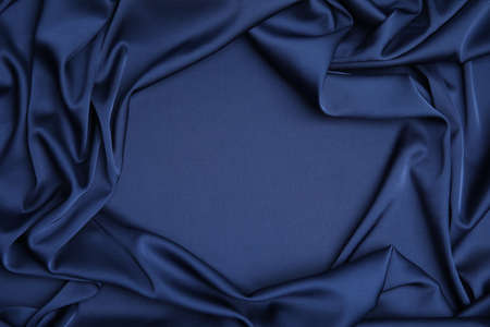 Smooth fabric with folds. Beautiful bark blue background.