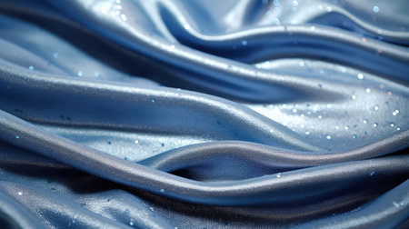 Blur soft waves of blue satin are highlighted, the shimmering surface rippling like liquid, creating a delicate balance between light and dark areas, enhancing its refined beauty